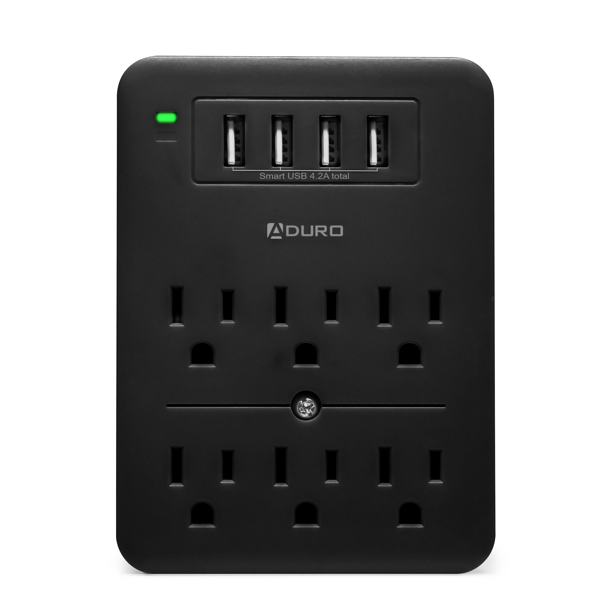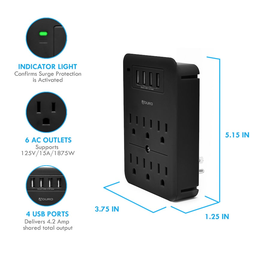 The Aduro Surge Multi Charging Station with 6 Outlets & 4 USB Ports charges 10 power-hungry devices at once, without looking for available outlets so its much more convenient for you and your family to charge simultaneously. Its small & compact size is perfect for travel and taking it with you whenever you're on the go, and its Safety Shutdown Technology & Smart Charge USB ports ensure protection & power charge efficiency. It also has a phone stand where you can conveniently place your phone while it charges.