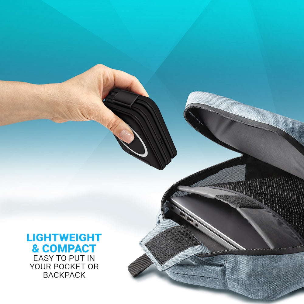 Crafted from high-quality materials, this charging station showcases a sleek and modern design that seamlessly blends into any environment. Its compact size makes it perfect for home or office use, and the convenient foldable feature makes it portable enough to take on your travels. The 18W High Speed USB Charger and Type C Cable is included in the box as well.