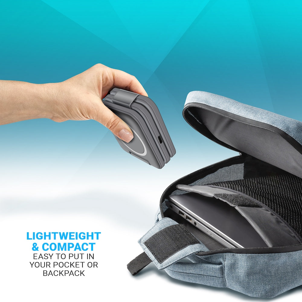 Crafted from high-quality materials, this charging station showcases a sleek and modern design that seamlessly blends into any environment. Its compact size makes it perfect for home or office use, and the convenient foldable feature makes it portable enough to take on your travels. The 18W High Speed USB Charger and Type C Cable is included in the box as well.