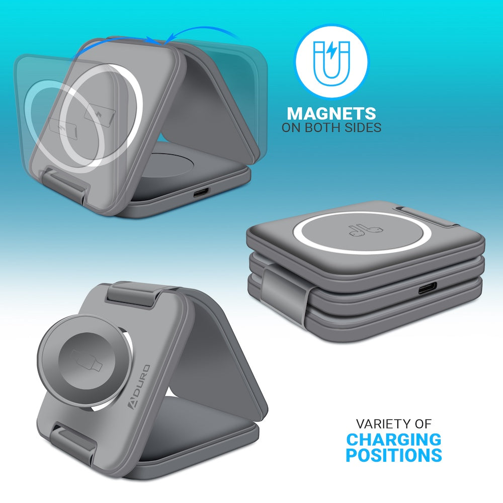 Trinity 3 in 1 Wireless Charging Station for iPhone AirPods & iWatch - GRAY | Mega Morning Deals - MegaMorningDeals