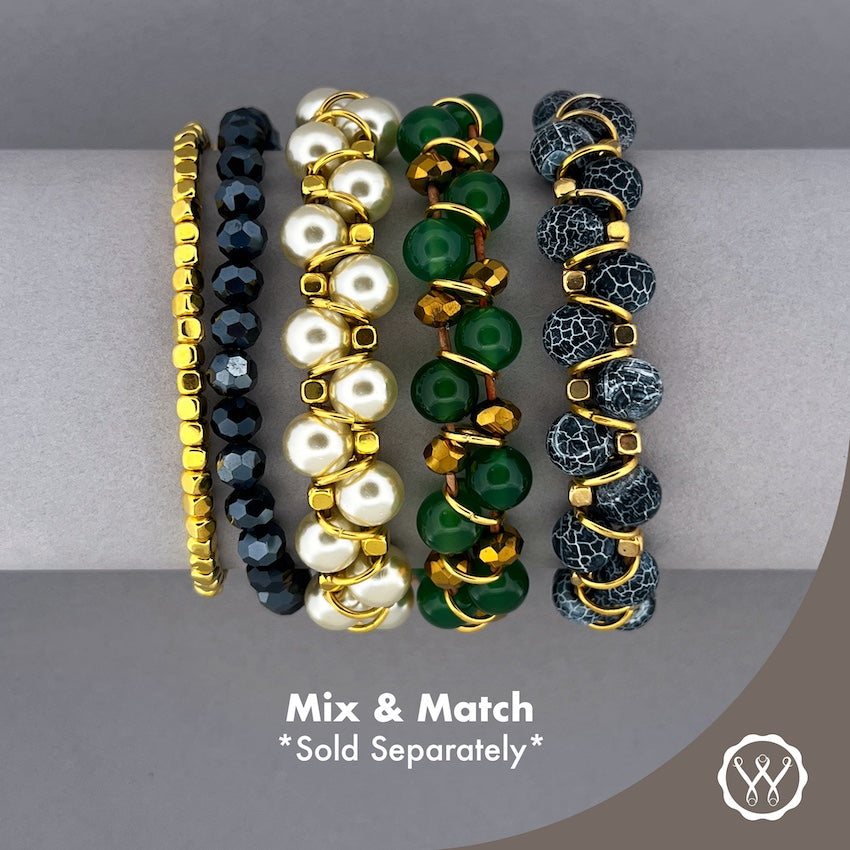 NAVY GOLD: Sparkling & eye-catching, our Navy Gold artisan features 6mm navy and gold crystals on natural leather.