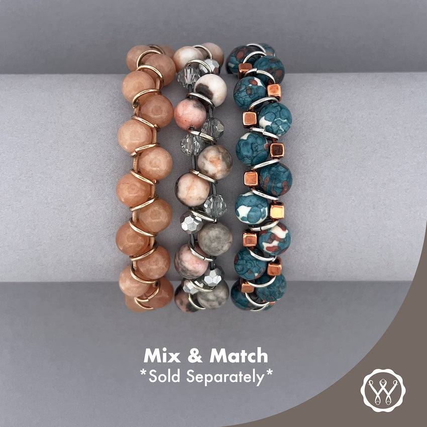 Stunning Dark Blue Rainbow Stones featuring deep blue stone with hints of coral handcrafted on genuine leather. Fastens with an engraved Willamy metal button.