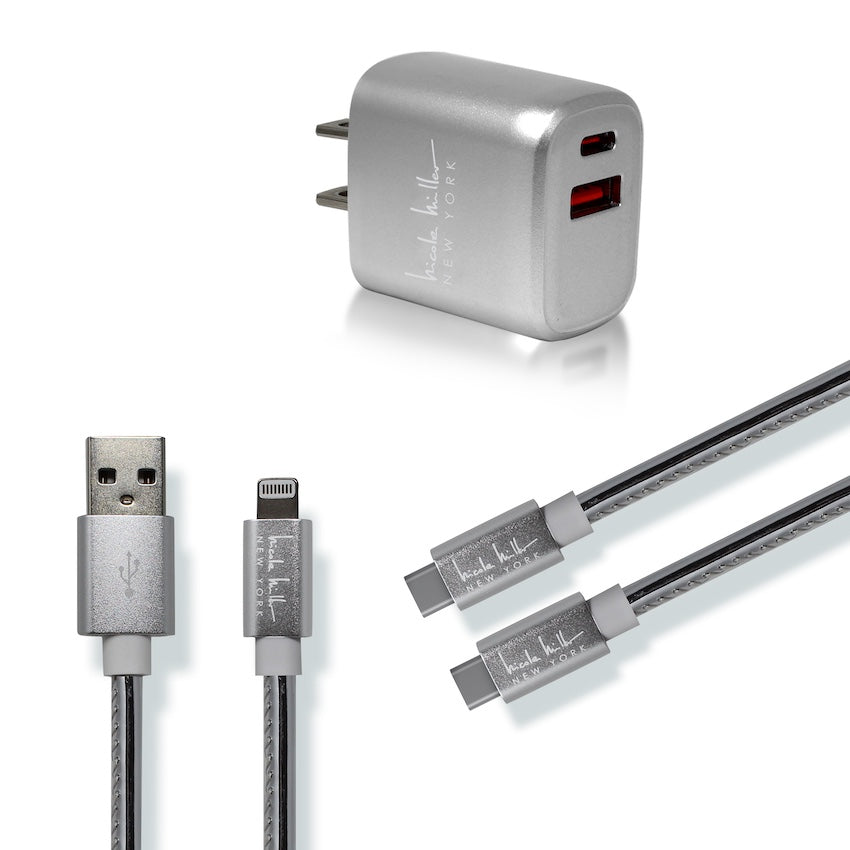 Nicole Miller Universal Rapid Charging Bundle - Silver | Mega Morning Deals - MegaMorningDeals