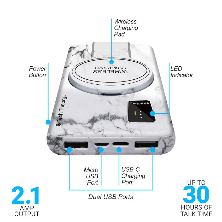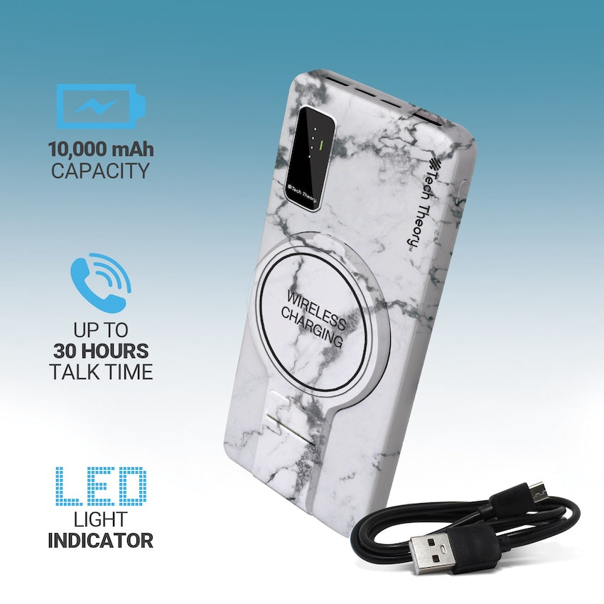 View Wireless Charging 10,000mAh Backup Battery - WHITE MARBLE | Mega Morning Deals - MegaMorningDeals