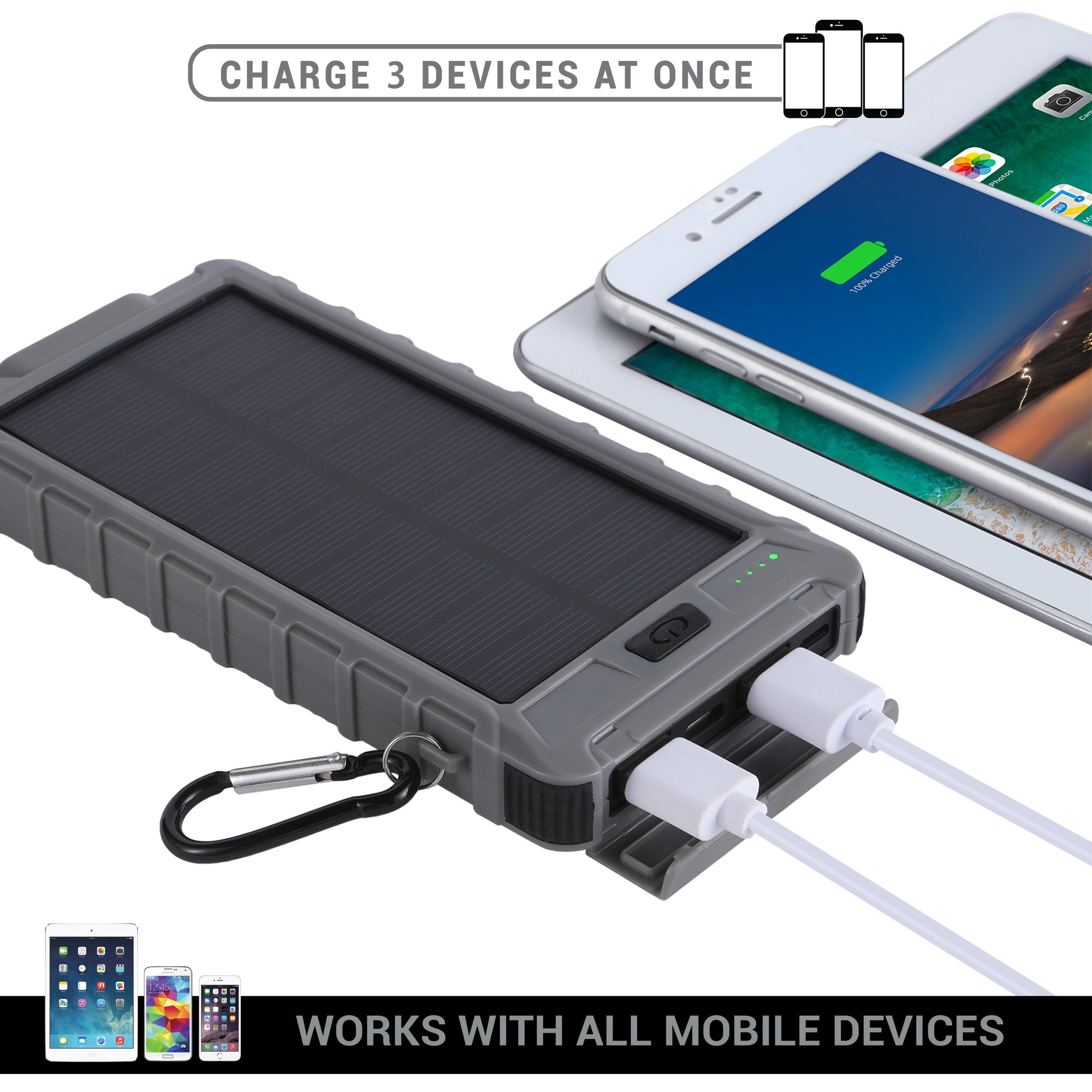 Solar 10,000mAh Dual USB Backup Battery - Grey | Mega Morning Deals - MegaMorningDeals