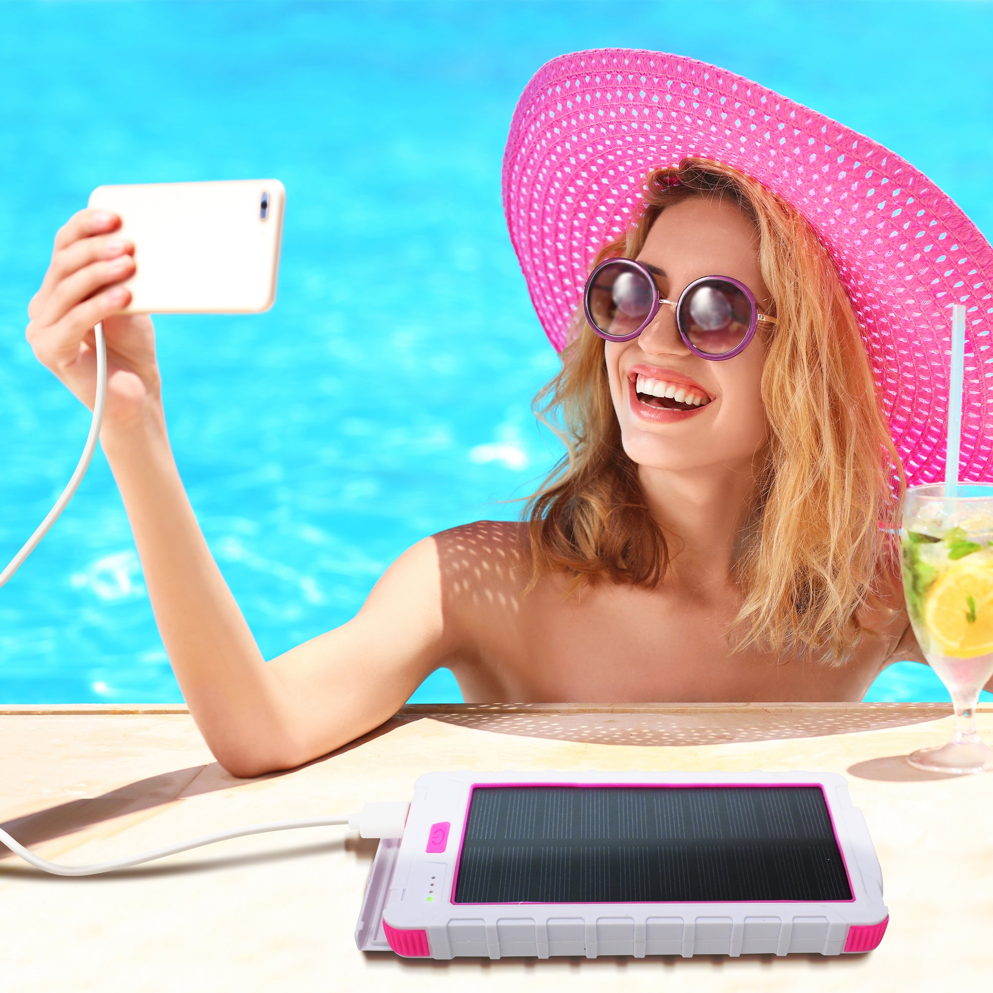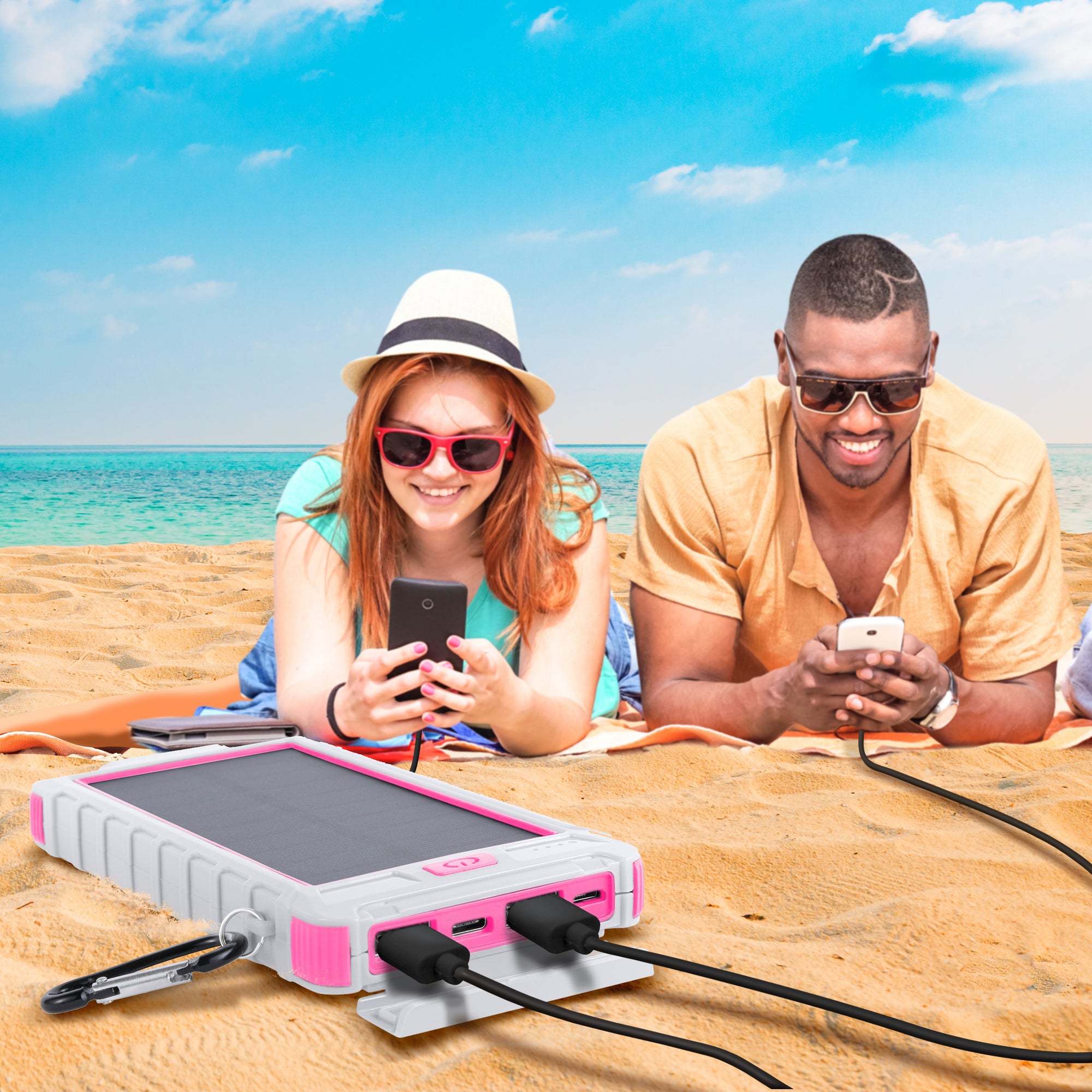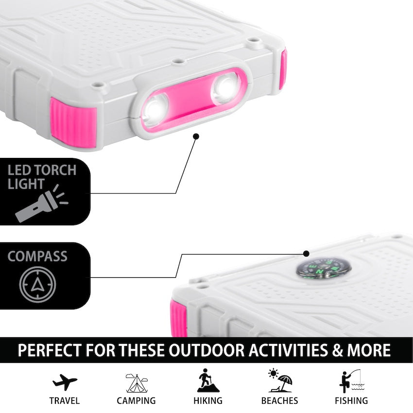 Solar 10,000mAh Dual USB Backup Battery - Pink | Mega Morning Deals - MegaMorningDeals