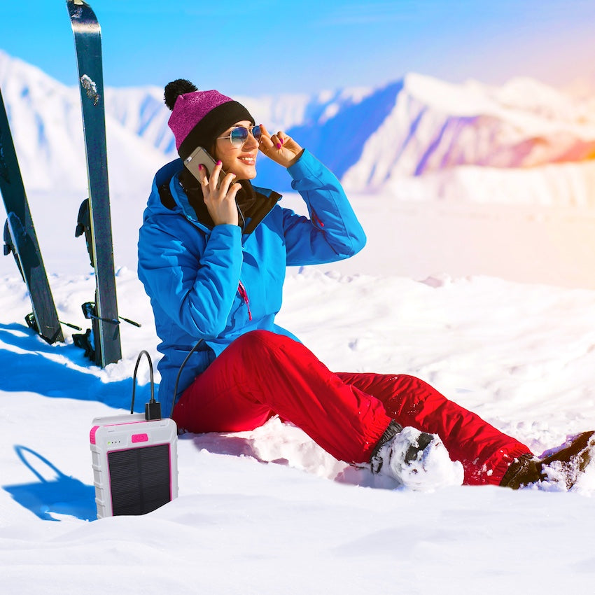 Solar 10,000mAh Dual USB Backup Battery - Pink