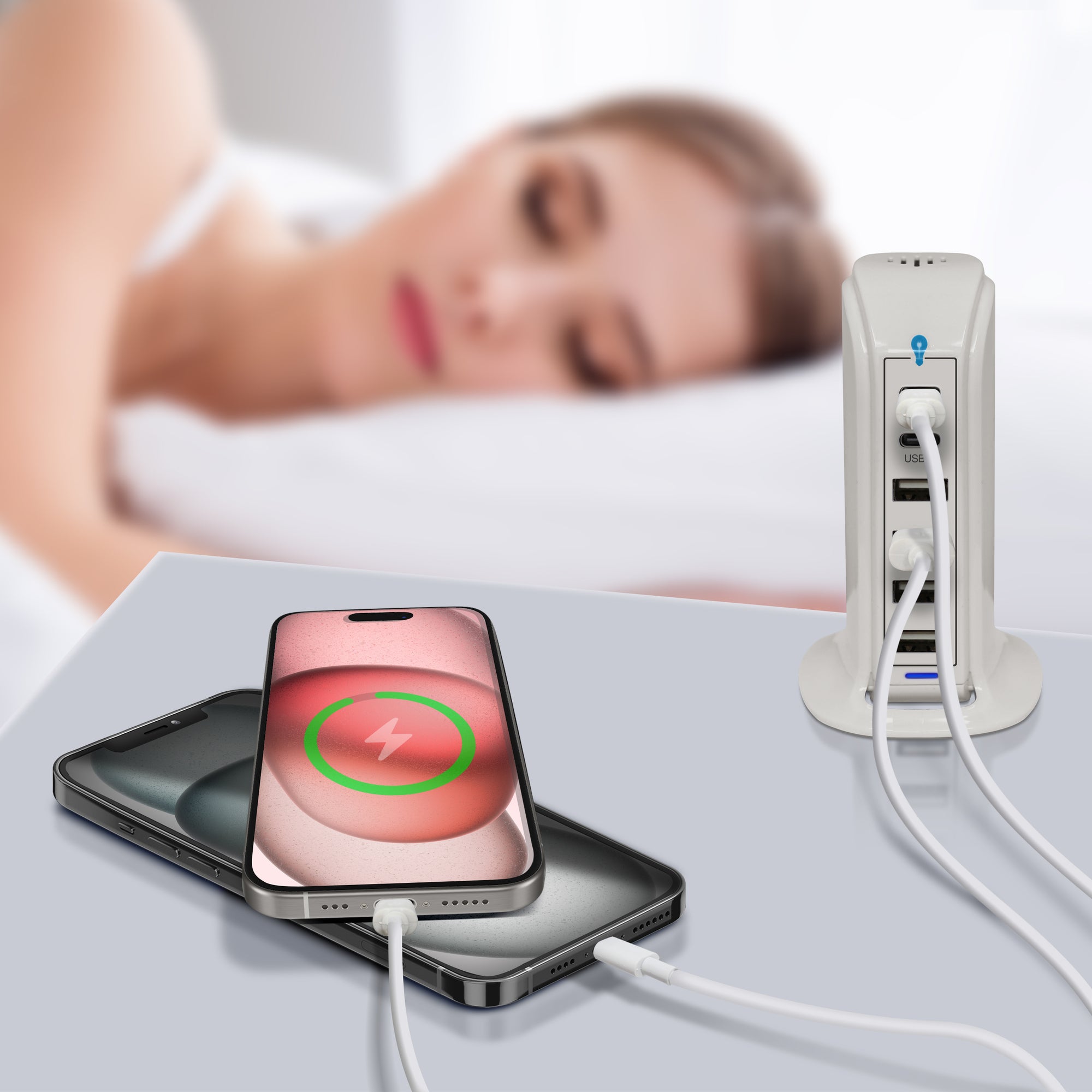 Equipped with cutting-edge PD Fast Charging technology, this charging station features Dual Type C ports alongside four USB ports, delivering unparalleled versatility and convenience.