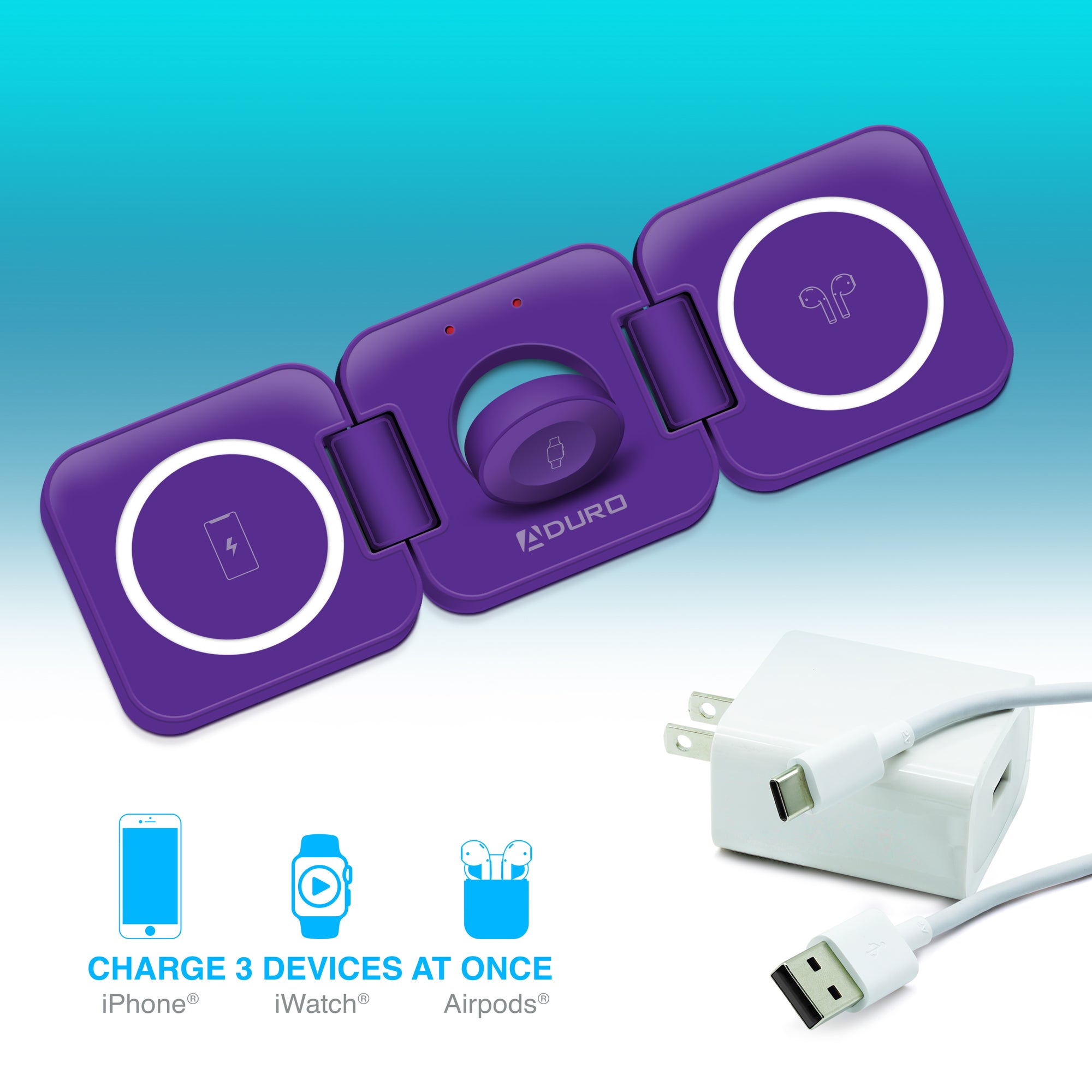 Trinity 3 in 1 Wireless Charging Station for iPhone AirPods & iWatch - Purple | Mega Morning Deals - MegaMorningDeals