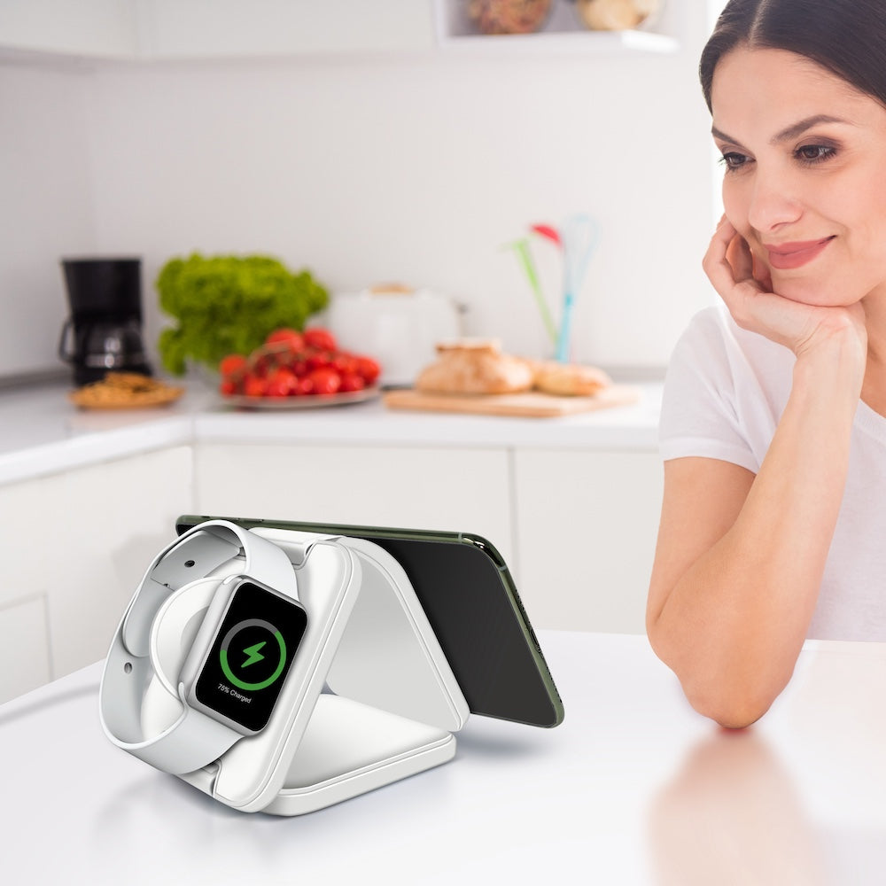 Trinity 3 in 1 Wireless Charging Station for iPhone AirPods & iWatch - WHITE | Mega Morning Deals - MegaMorningDeals