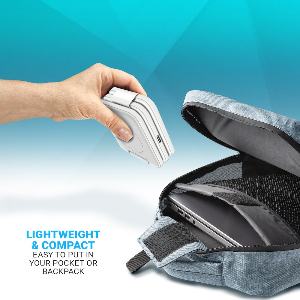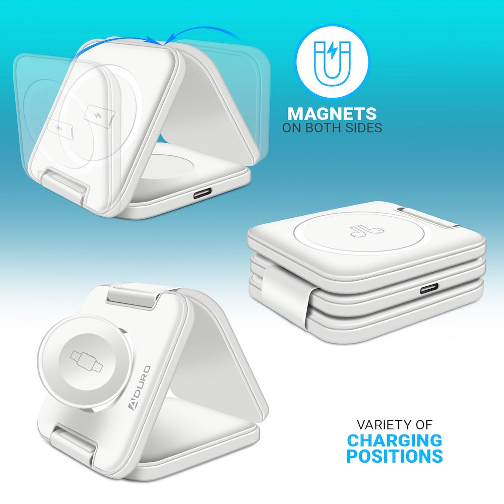 Crafted from high-quality materials, this charging station showcases a sleek and modern design that seamlessly blends into any environment. Its compact size makes it perfect for home or office use, and the convenient foldable feature makes it portable enough to take on your travels. The 18W High Speed USB Charger and Type C Cable is included in the box as well.