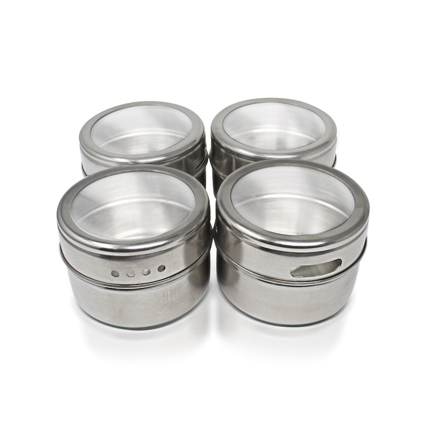 Keep your favorite spices organized, fresh, and within easy reach with this 4-Pack of Steel Twist & Shake Spice Jars. Designed for both style and functionality, each jar features a durable stainless-steel body with a clear viewing window so you can easily identify contents at a glance.